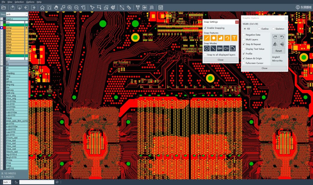 OpenCAM是由無(wú)錫東領(lǐng)智能科技股份有限公司開(kāi)發(fā)的一款輕量級(jí)PCB CAM圖形查看器。基于C++開(kāi)發(fā),具有超高的圖形顯示效率,完全支持ODB++8.1格式。